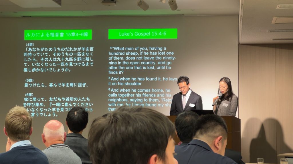 Then, in December, we had a MOGs Christmas Party, with 106 people attending, including around 20-25% who are not yet Christians. And the feedback was very positive, for which we thank the LORD. The two speakers (Andrew Cho, Kenichiro Manabe) gave good presentations about the meaning of Christmas and how relationship with God impacts them in their workplaces. These parties are always a good opportunity for all 14 of the Marunouchi Office Groups to work together to invite friends to come and hear about Jesus.